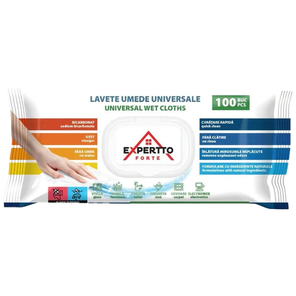 EXPERTTO FORTE LAVETE UMEDE UNIVERSALE CU BICARBONAT SI OTET 100BUC