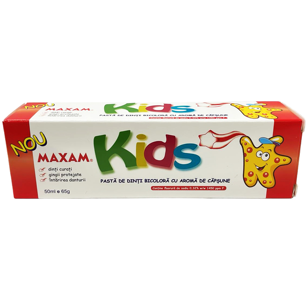 MAXAM KIDS PASTA DE DINTI BICOLORA CAPSUNI 50ML/65G