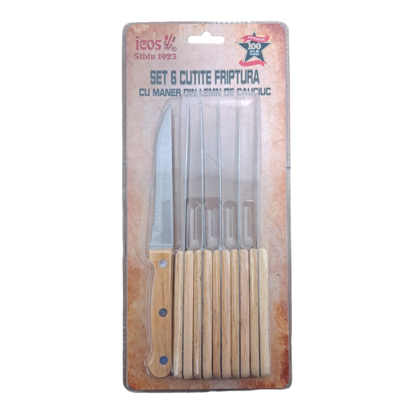 SET 6 CUTITE DE FRIPTURA CU MANER DIN LEMN SOSTEAK0600